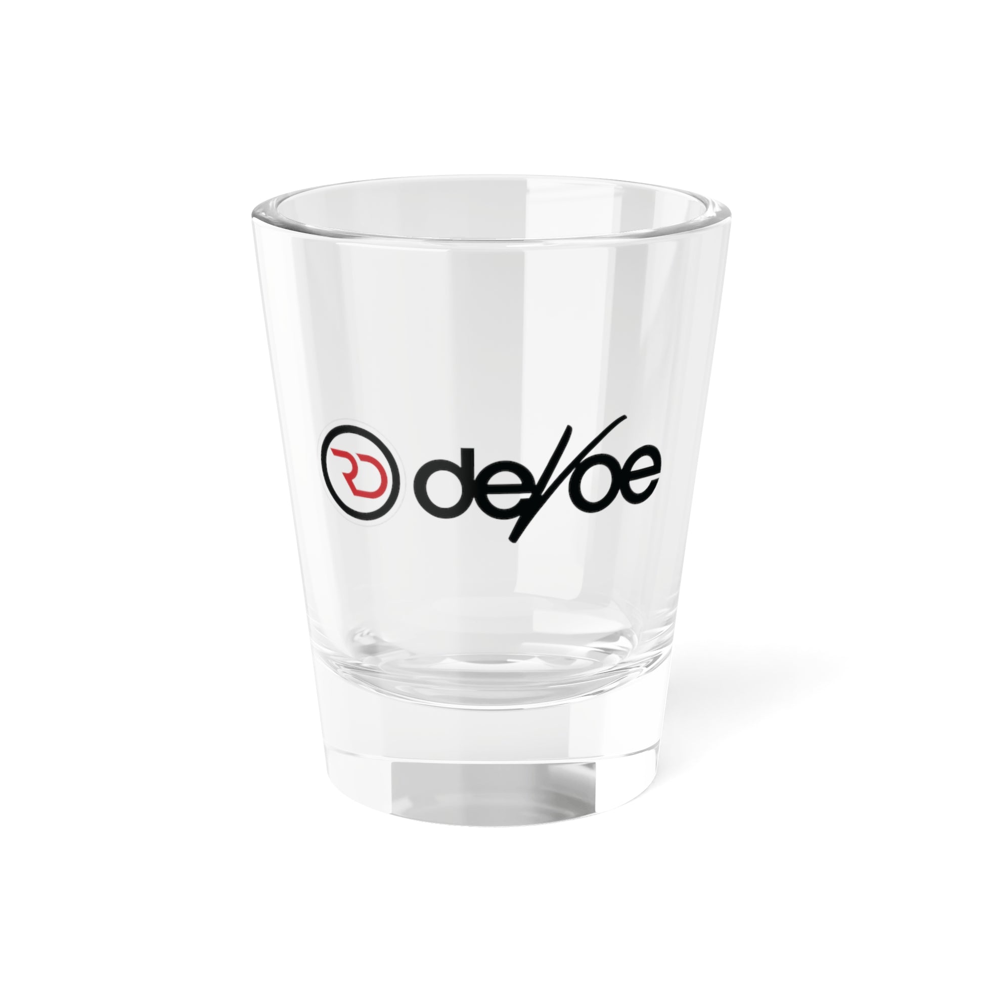 Branded 1.5oz Shot Glass — De/oe Logo Clear Shooter Glass